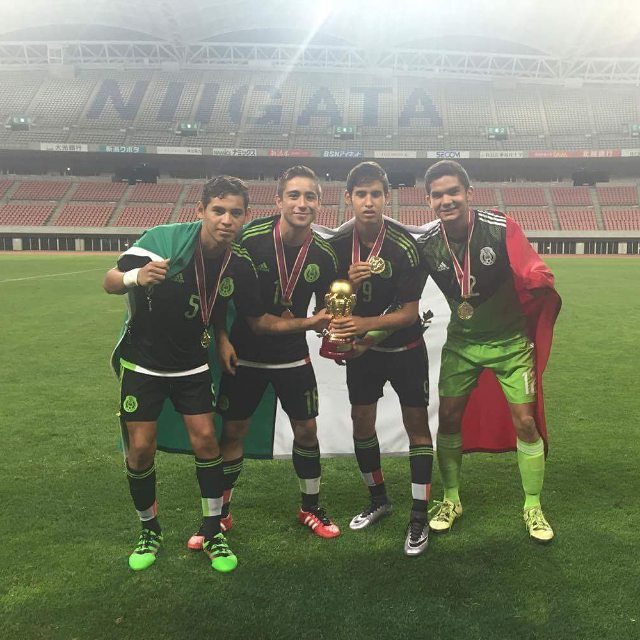 Luis Gamíz, Raúl Sandoval, Daniel López y Carlos Higuera, campeones del Torneo Niigata con la Selección Mexicana Sub17