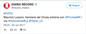 El hermano del Chucky Lozano, Mauricio, se está entrenando con la primera de Pumas. Realizaría la pretemporada por pedido de Palencia. ¡Mucha suerte!