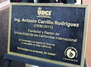 La trayectoria y los valores del fundador de la Universidad de las Californias Internacional (UDCI), Ing. Antonio Carillo Rodríguez, fueron reconocidos por colegas, familiares y amigos durante el homenaje póstumo que se le hizo en las instalaciones de la institución, en el marco, también del vigésimo sexto aniversario de la misma.