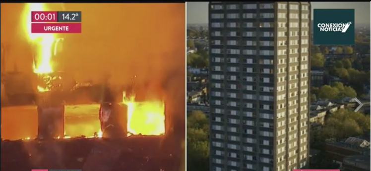 Las imágenes de televisión muestran cómo las llamas devoran la Torre Grenfell, una construcción de más de 24 plantas con 120 apartamentos, ubicado en White City, no lejos del área de Notting Hill.