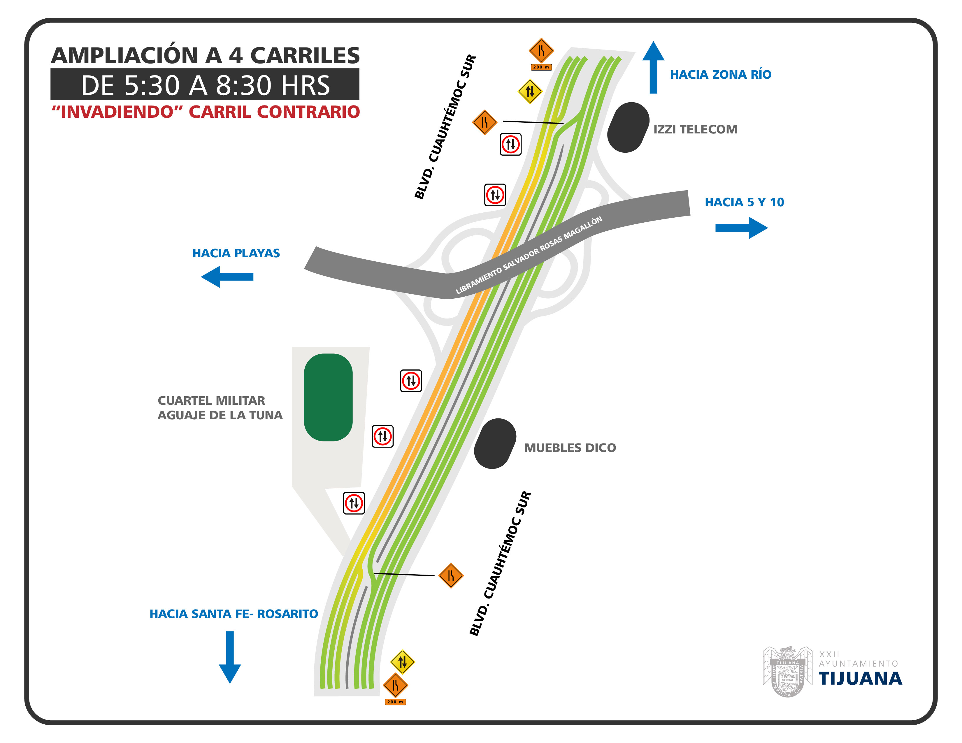 -Se podrá “invadir” carril contrario a la altura del Cuartel Militar, pero sólo de 5:30 a 8:30 horas