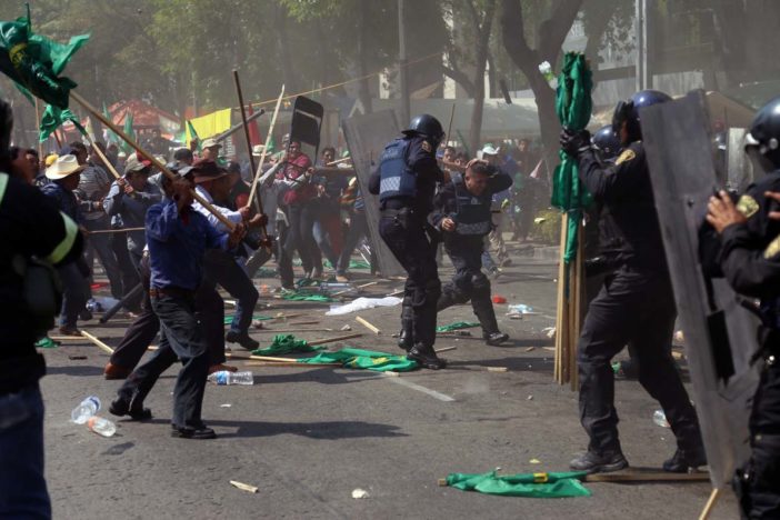 Se enfrentan campesinos y policías en Paseo de la Reforma; hay 20 heridos