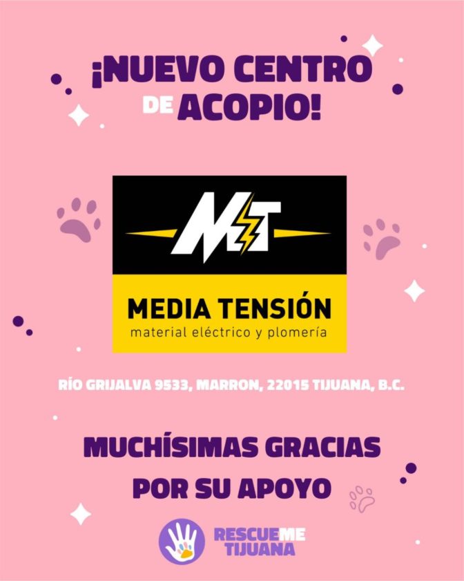 Como parte de su responsabilidad social, la empresa Media Tensión se sumó a los esfuerzos de la organización Rescue Me Tijuana, por lo que se ha convertido en centro de acopio a beneficio de mascotas rescatadas.