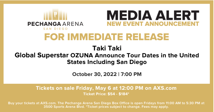 Taki Taki, Ozuna anuncia fecha de gira en San Diego