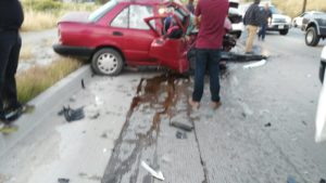 La víctima es una mujer de entre 30 años de edad que viajaba como copiloto en un automóvil Tsuru rojo que es prácticamente despedazado y cuyo conductor también resulta con lesiones graves.